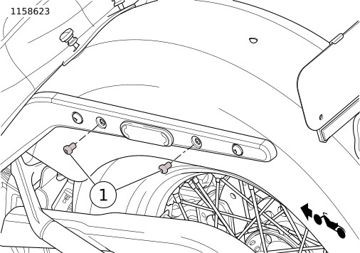 | 2. | איור 1 שחרר את בורגי התמיכה של הפגוש (1). | איור 1. הסרת הבורג - הפגוש האחורי |