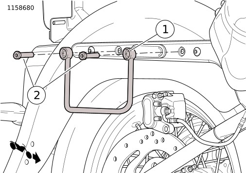 | 4. | איור 2 התקן מסילת תמיכה (1) תמיכת פגוש אחורי באמצעות בורג (2) מהערכה. | |
