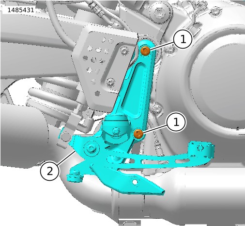 4. | התקן את הברגים (1). הדק. מומנט סיבוב: 28.5–31.5 N·m (21–23 ft-lbs) בורג משענת הרגל של רוכב | |