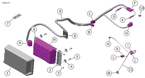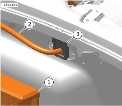 2. | העבר את המחברים המסועפים של הרתמה [349B] (1) מאחורי אזור תיבת המצבר בכיוון כיסוי הצד הימני. הערה ניתן להעביר את [319B] מתחת למיקום אחר. | |||||||||||||||||