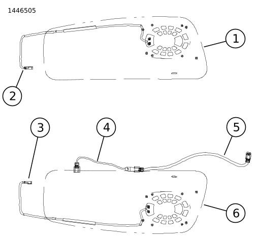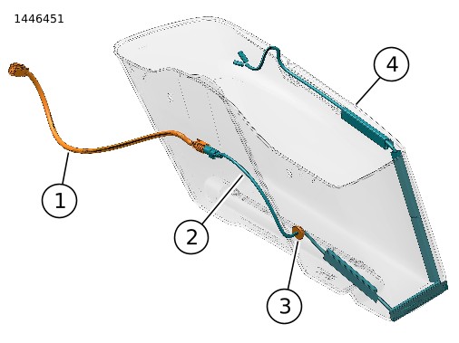 4. | Gambar 2 Temukan harnes kabel 69202531 (4). a. Hubungkan 69202531 4 arah (4) ke konektor harnes amplifier primer [351A] di bawah penutup sisi kanan. | |
