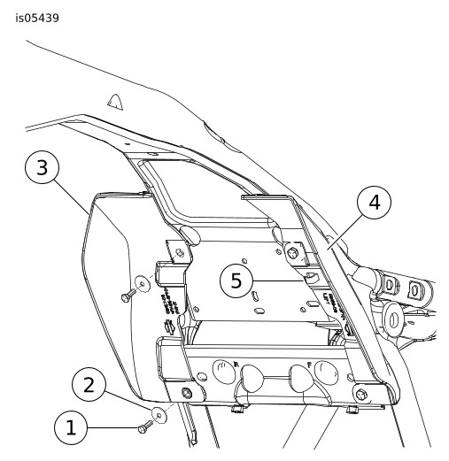 6. | Pasang kabel busi belakang ke klip kabel deflektor kiri (5). |