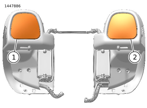 1. | Gambar 3 Lepaskan dan buang penutup wadah fairing bawah (1, 2). a. Wadah ditahan oleh tiga klip. |
