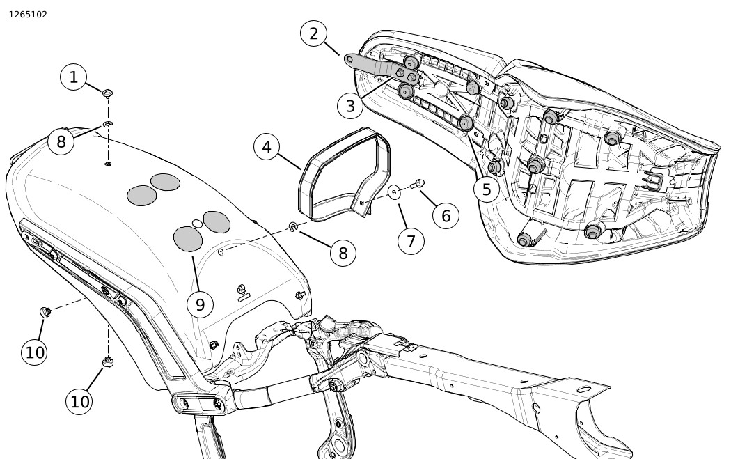 5. | התקן את תושבת המושב בכנף בעזרת בורג ההתקנה של מושב OE. הדק. מומנט סיבוב: 1.7–3.4 N·m (15–30 in-lbs) | |