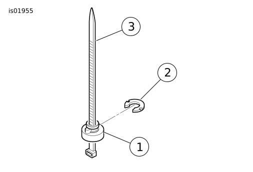 1. | ערכות 52000295, 52000297, 52000300, 52000355, 52000356, 52000387, 52000388, 52000400, 52000401, 52000652, 52000653, 52000748: איור 3 התקן את אום האחיזה ואת דסקית האחיזה בחורים המתאימים של הכנף. a. ניתן להיעזר באזיקון להתקנת אום ודסקית האחיזה. שים את אום האחיזה (1) מעל האזיקון (3). b. העבר את האזיקון כלפי מעלה מתחת לכנף ודרך החור המתאים בכנף. משוך את האזיקון כדי להצמיד את האום היטב לצד התחתון של הכנף. c. כשהצלע באום האחיזה ממוקמות במגרעת בחור המתאים בכנף, החלק מאחור את דסקית האחיזה (2) למקומה. עקב זאת אום האחיזה תינעל במקומה. d. הסר את האזיקון. | |