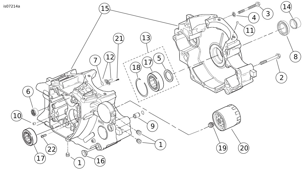 13 | ערכת מיסב, צד שמאל [כולל פריטים 5 ו-18, מיסב אחד (17) ומסילת המיסב הפנימי] | 24004-03B |