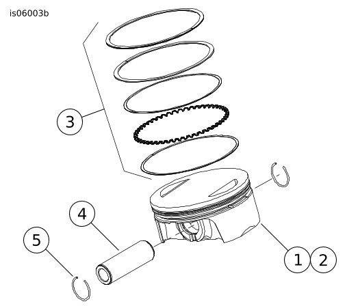 11. | עיין בנושא "מנוע: הרכבת המנוע לאחר הפשטת אביזרים" במדריך הטיפולים למידע על נוהלי ההרכבה הסופית. | איור 5. מכלול בוכנה |