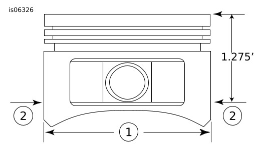 5. | ראה איור 2 . מדוד את רוחב הבוכנה (1), 90 מעלות אופקית משני צידי חור פין הבוכנה ו- 1.275 אינץ' למטה משטח הדק (למעלה) של הבוכנה (2). ראה טבלה 11 להתאמת בוכנה לצילינדר במיקום זה. | |||||