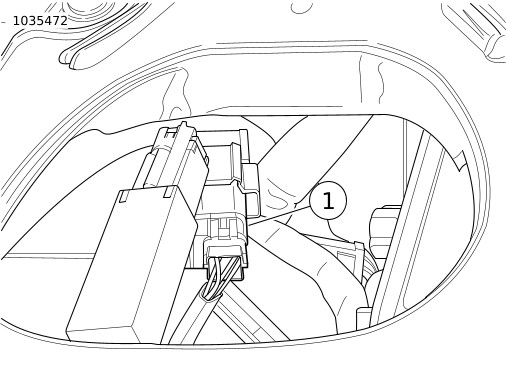 | 15. | נתב את רתמת החיווט של המחבר האפור של חיישן החמצן קדמי החוצה דרך הצד האחורי של תא המצבר: a. אתר את רתמת החיווט (7) של ה-ABS. b. נתב את רתמת החיווט עם המחבר האפור (1) לאורך רתמת החיווט של ה-ABS לעבר מסילת המסגרת השמאלית. c. נתב את רתמת החיווט (1) לאורך המסגרת לעבר המחבר הקדמי של רתמת החיווט הראשית. d. התאם את צבע המחברים: שחור לשחור. e. אבטח את רתמת החיווט לצד הפנימי של מסילת השלדה השמאלית בעזרת אזיקונים לפי הצורך. | |||||||||||||||