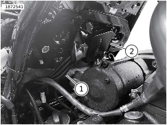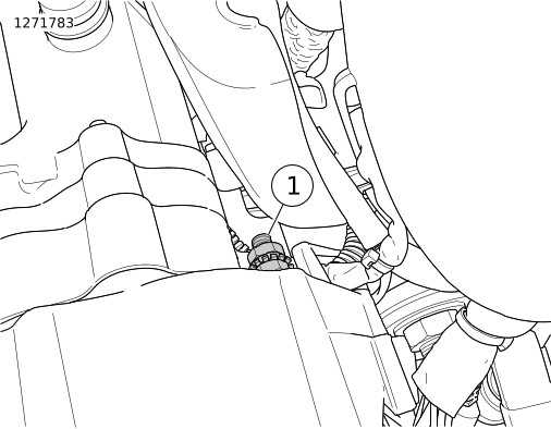 | 13. | הערה ראה איור 49. הדק הארקה (1) נמצא מאחורי המכסה הראשי על החצי השמאלי של בית הארכובה. ודא שכבל המצבר השלילי מורכב לנקודת ארקה זו. מומנט סיבוב: 6–10 N·m (50–90 in-lbs) |