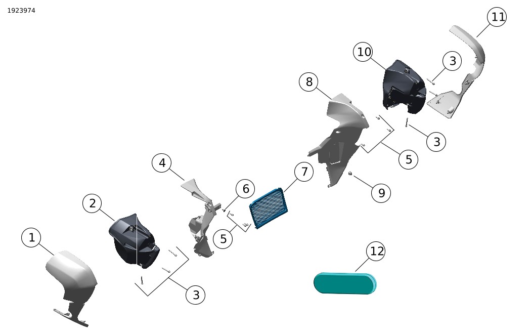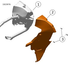 5. | Ulangi semua langkah untuk fairing bawah sisi kanan a. Pasang fairing kanan bawah bagian dalam di depan fairing kiri bawah bagian dalam di lokasi pengencang tengah. | |||||||||||||