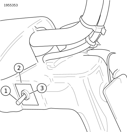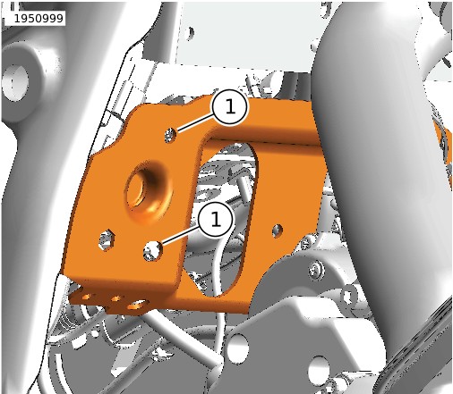 | 1. | Lihat Gambar 2. Temukan lubang pemasangan (1) di sisi kanan balok lintang rangka. |