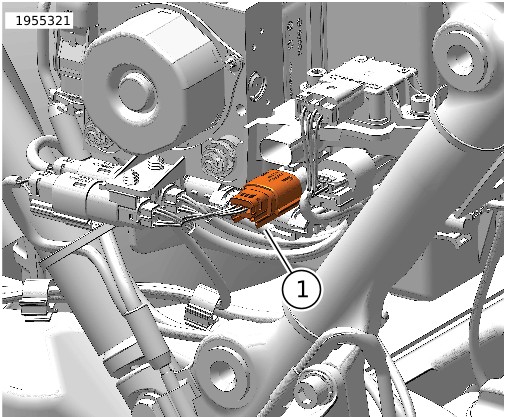 | 2. | FLRT: Konektor [205] terletak di bawah tangki bahan bakar di caddy kabel. |