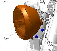 | 1. | See Figure 2. Set vertical adjustment: a. Loosen screws. b. Tilt headlamp up or down to aim it at horizontal line on wall. c. Tighten headlamp screws. Torque: 40.7–47.5 N·m (30–35 ft-lbs) Headlamp vertical adjustment |