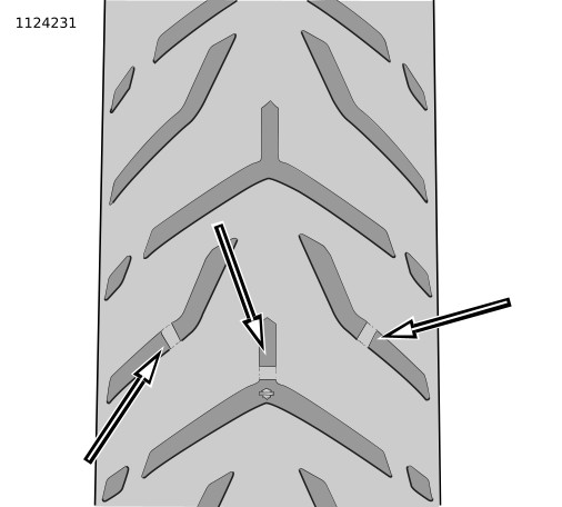 החלף מיד את הצמיג בצמיג המופיע במפרטי Harley-Davidson כאשר פסי השחיקה מתחילים להיראות לעין או כשנותר עומק סוליה של 1 mm (1/32 in) בלבד. רכיבה עם צמיג שחוק עלולה להוביל למוות או פציעה חמורה. (00090c)