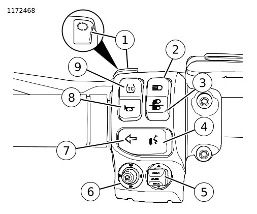 איור 1 . מתג בקרת האחיזה (9) מפעיל ומנתק את מערכת בקרת האחיזה. עיין ב