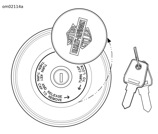 אחוז את מכסה מיכל הדלק במקומו. סובב את המפתח נגד כיוון השעון עד לעצירתו.