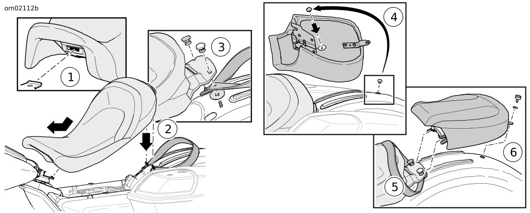 במידת הצורך, הסר את רצועת המושב מתחת לכנף מושב הרוכב.