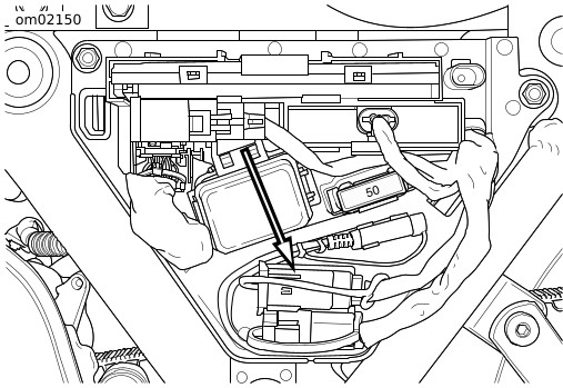 איור 2. מחבר האביזרים נמצא מתחת לכיסוי הצד השמאלי. גש אל סוכן Harley-Davidson או לאתר www.harley-davidson.com כדי לרכוש אביזרי חשמל המתאימים לאופנוע שלך.