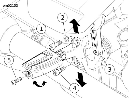 1. | ראה איור 1. הסר את הבורג העליון של התושבת (1) ואת הדסקית (2). | |