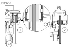 איור 1. הסתכל בעינית הביקורת (1) כדי לוודא שמפלס הנוזל נמצא באמצע העינית או מעליו.