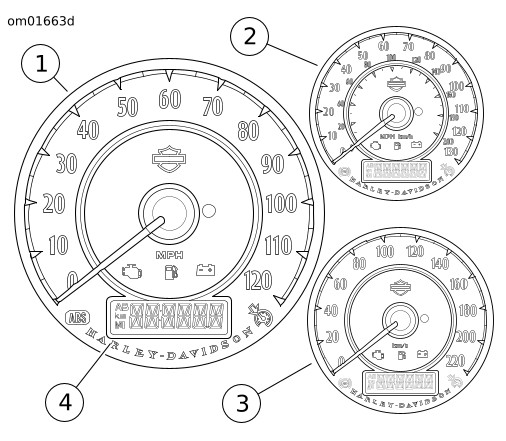 איור 1. מכשירים: בכולם מלבד 1200 Roadster (XL1200CX)