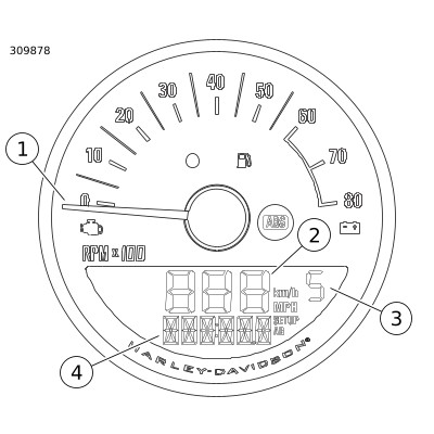 איור 1 . מד המרחק (4) נמצא על הפנים של מד המהירות.