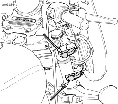 5. | כוונן את מגן הרוח: a. הצב את השמשה מול נקודת האמצע של צינורות המזלג, הפנס הראשי ומד המהירות. b. כוונן את הגובה. אל תסתיר את מאותתי הפנייה, אל תמעך את רתמות החיווט של מאותתי הפנייה ואל תפריע לפעולת הכבלים של המצמד או המצערת. | |