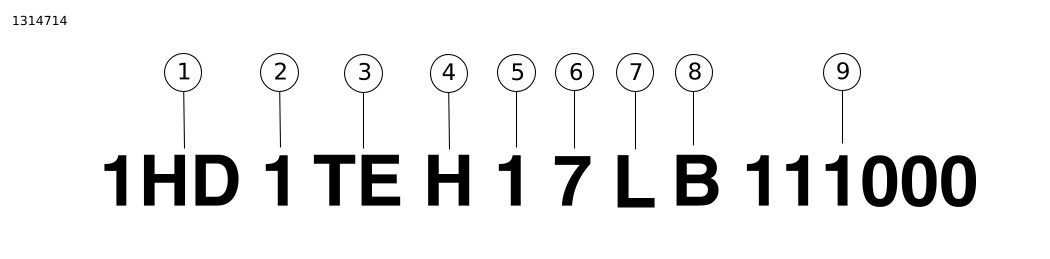 1 | מזהה היצרן בעולם | 1HD = יוצר במקור בארצות הברית 5HD = יוצר במקור בארצות הברית או תאילנד למכירה מחוץ לארצות הברית 932 = יוצר במקור בברזיל MEG = יוצר במקור בהודו MLY = יוצר במקור בתאילנד | |