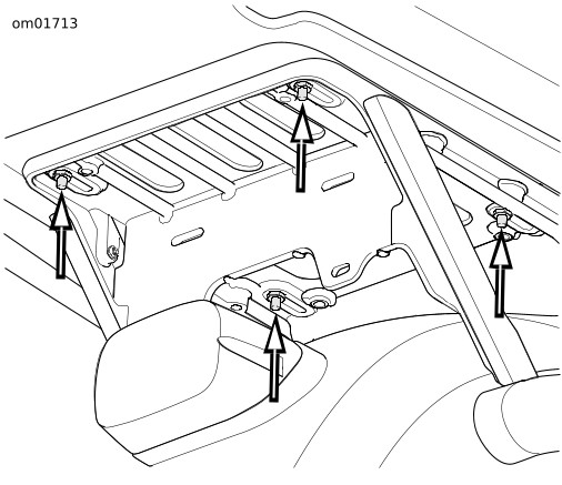 4. | התקן את ארבעת הברגים. הדק. מומנט סיבוב: 6.8–8.1 N·m (60–72 in-lbs) בורגי תושבת Tour-Pak (דגמי APC) | |