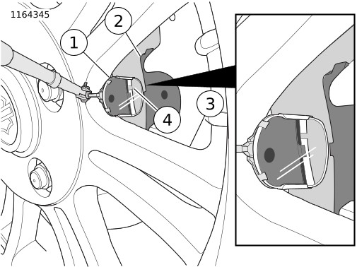 4. | החלף את רפידות הבלם לפני שהחריץ מציין השחיקה נשחק לגמרי ונעלם. | |