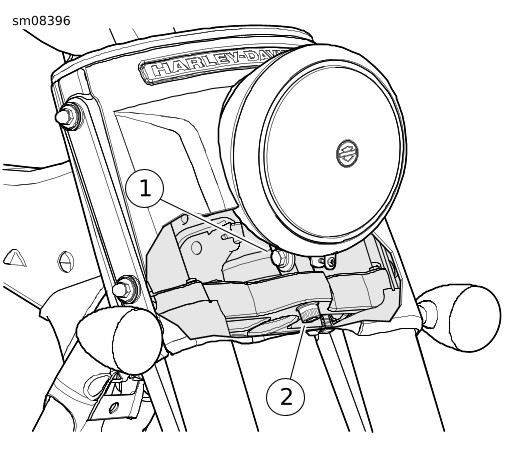 3. | הדק את הבורג (2) אל: מומנט סיבוב: 40.7–47.5 N·m (30–35 ft-lbs) בורג כוונון אופקי של הפנס הראשי. FLRT (פנס ראשי יחיד) | |