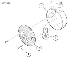 6. | חבר את העדשה (2) לבית המנורה (4) באמצעות שני ברגים (1). | |