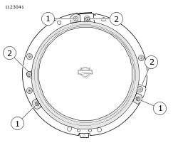 2. | אבטח את מכלול הפנס הראשי בעזרת טבעת הנעילה והברגים (1). הדק ל-2.6–2.9 N·m (23–26 in-lbs). | |