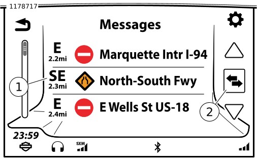 5. | Consultez Figure 3.. Le message de circulation (2) s’affiche. Sélectionnez le message à l'écran pour entendre la reconnaissance vocale. | |||||