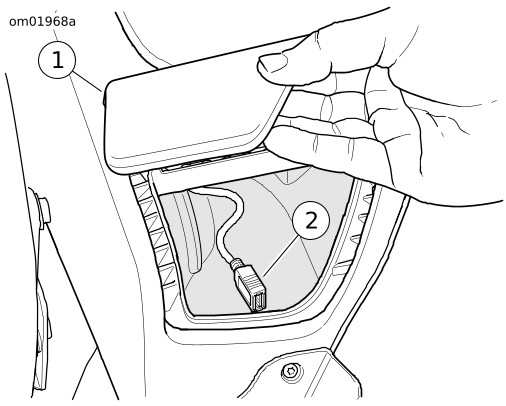 Figure 1. . Un compartiment multimédia est situé sur le côté droit du carénage des véhicules à carénage fixe.