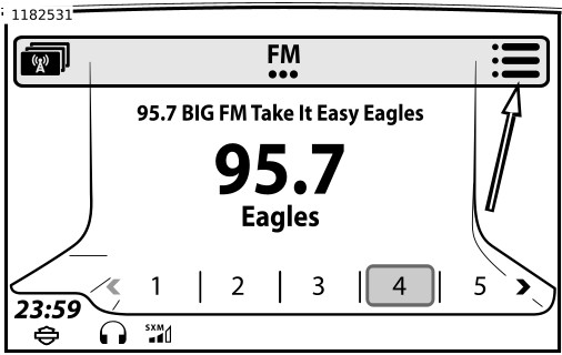 Figure 5.. L’icône Catégories de station accède aux catégories sélectionnables permettant une fonction de balayage personnalisées.
