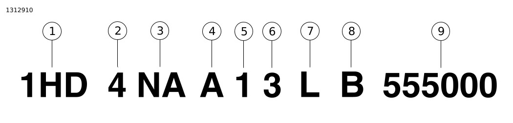 1 | Mã định danh nhà sản xuất trên thế giới | 1HD=Được sản xuất ban đầu ở Hoa Kỳ 5HD=Được sản xuất ban đầu ở Hoa Kỳ hoặc Thái Lan để bán bên ngoài Hoa Kỳ MEG=Được sản xuất ban đầu ở Ấn Độ MLY=Sản xuất ban đầu ở Thái Lan | |