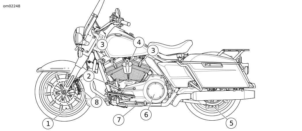 Iliustracijos skirtos tik bendrai informacijai. Pavaizduotos valdymo priemonės ir prižiūrimi komponentai yra bendros vietos ir atvaizdai, kurie nenurodo konkretaus motociklo modelio.