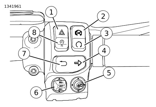 Tryck för att tala (PTT)/ Bruströskel | Manövrerar komradion eller snabbtelefonen mellan förare/passagerare. | |
