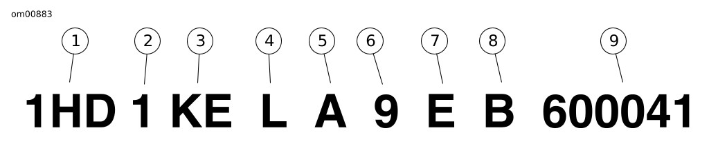 5 | Βαθμονόμηση/Διαμόρφωση, εισαγωγή | Κανονική εισαγωγή 1=Η.Π.Α. (DOM) 3=Καλιφόρνια (CAL) A=Καναδάς (CAN) C=HDI E=Ιαπωνία (JPN) G=Αυστραλία (AUS) J=Βραζιλία (BRZ) L=Ασία Ειρηνικός (APC) N=Ινδία (IND) | Εισαγωγή στα μέσα έτους ή ειδική εισαγωγή 2, 4=Η.Π.Α. (DOM) 5, 6=Καλιφόρνια (CAL) B=Καναδάς (CAN) D=HDI F=Ιαπωνία (JPN) H=Αυστραλία (AUS) K=Βραζιλία (BRZ) M=Ασία Ειρηνικός (APC) P=Ινδία (IND) |