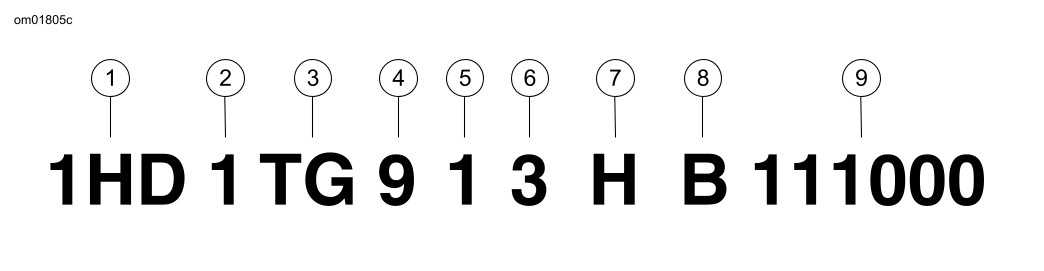 5 | Βαθμονόμηση/Διαμόρφωση, εισαγωγή | Κανονική εισαγωγή 1=Η.Π.Α. (DOM) 3=Καλιφόρνια (CAL) A=Καναδάς (CAN) C=HDI E=Ιαπωνία (JPN) G=Αυστραλία (AUS) L=Ασία Ειρηνικός (APC) | Εισαγωγή στα μέσα έτους ή ειδική εισαγωγή 2, 4=Η.Π.Α. (DOM) 5, 6=Καλιφόρνια (CAL) B=Καναδάς (CAN) D=HDI F=Ιαπωνία (JPN) H=Αυστραλία (AUS) |