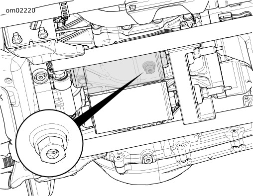 | 2. | Δείτε Εικόνα 3. Αφαιρέστε το πώμα εκκένωσης του κιβωτίου ταχυτήτων και εκκενώστε το λιπαντικό σε ένα κατάλληλο δοχείο. ΣΗΜΕΙΩΣΗ Απορρίψτε το λιπαντικό σύμφωνα με τους τοπικούς κανονισμούς. | |