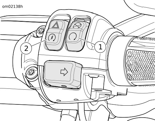 Πιέστε το διακόπτη μίζας (2) για να ξεκινήσετε τη μοτοσικλέτα.