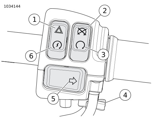 Sein kanan | Tekan sakelar untuk menghidupkan lampu sein kanan. |