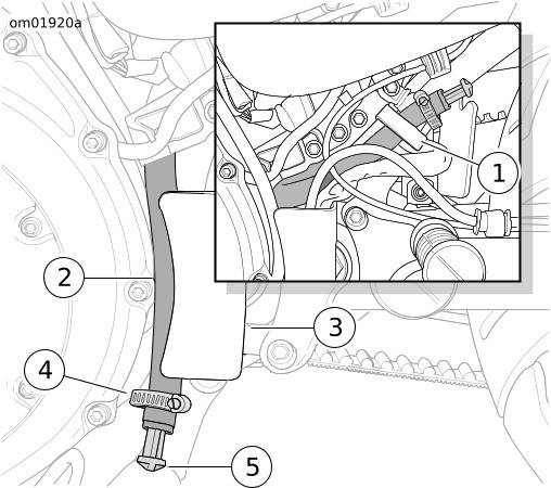 5. | Arahkan selang kuras (2) di bagian depan braket (3) ke wadah kuras. | |