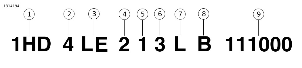 1 | Kode pengenal produsen internasional | 1HD=Diproduksi di Amerika Serikat 5HD=Diproduksi di Amerika Serikat atau Thailand untuk penjualan di luar Amerika Serikat 932=Diproduksi di Brasil MEG=Diproduksi di India MLY=Diproduksi di Thailand | |