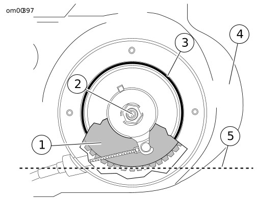 2. | Ketika mesin mencapai suhu operasi normal, parkir sepeda motor pada standar samping. Hal ini akan membuat pelumas kotak rantai keluar dari transmisi. | |