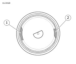Lihat Gambar 2. Sejajarkan tab pada leher pengisian tangki oli dengan slot (1, 2) pada dipstick.