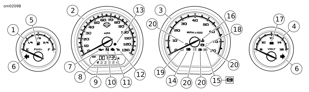 Gambar 1. Spidometer menampilkan kecepatan laju kendaraan dalam satuan mil per jam (mph) (AS) dan/atau kilometer per jam (km/h).